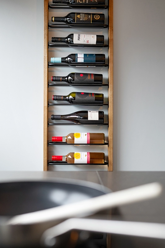 De tijdloze keuken van Alexander en Sara behoudt zijn open uitstraling dankzij slimme elementen. Door het gebruik van inbouwapparatuur, een veelzijdig kookschiereiland en innovatieve oplossingen blijven zaken zoals prullenbakken en de afzuiger netjes uit het zicht, wat bijdraagt aan een opgeruimde en ruime look van de keuken.